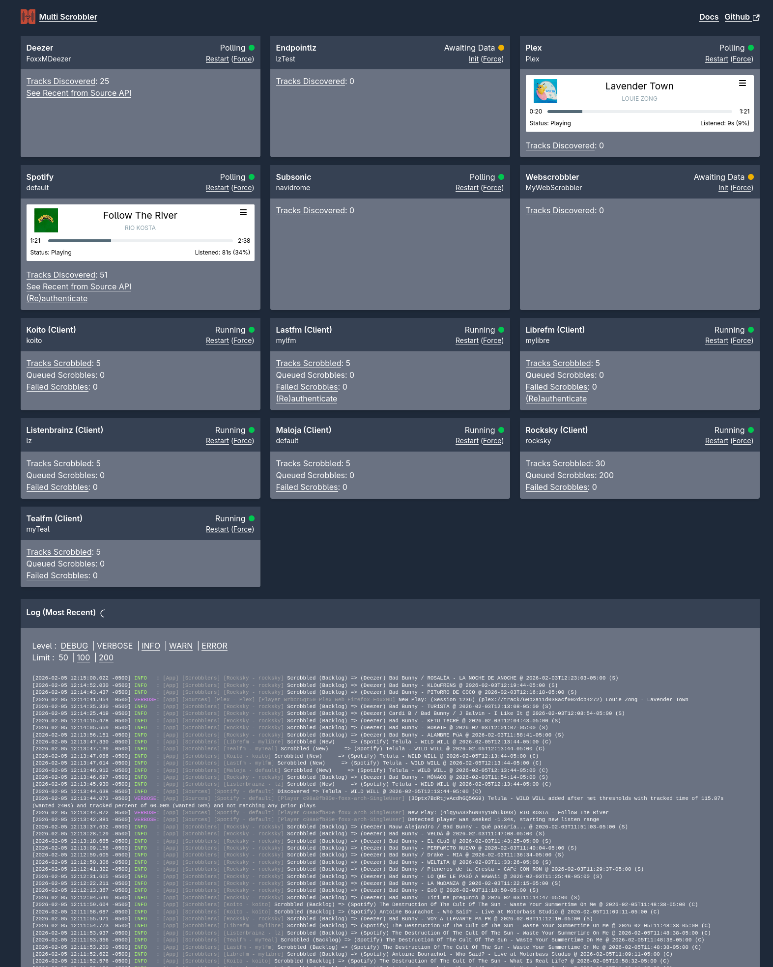 - Platform independent -- Because multi-scrobbler communicates directly with service APIs it will scrobble everything you play regardless of where you play it. No more need for apps on every platform you use!